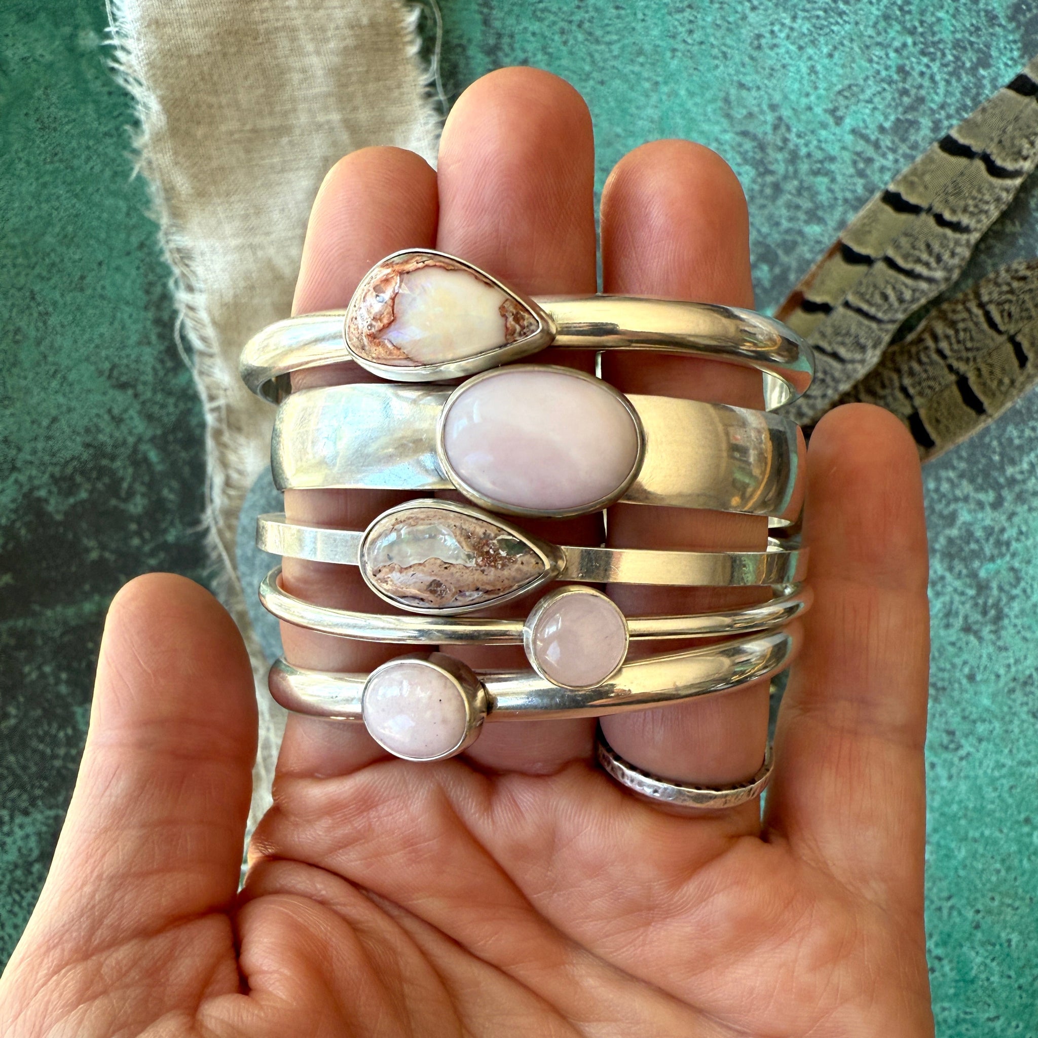 Pink Opal Guardian Cuff Bracelet