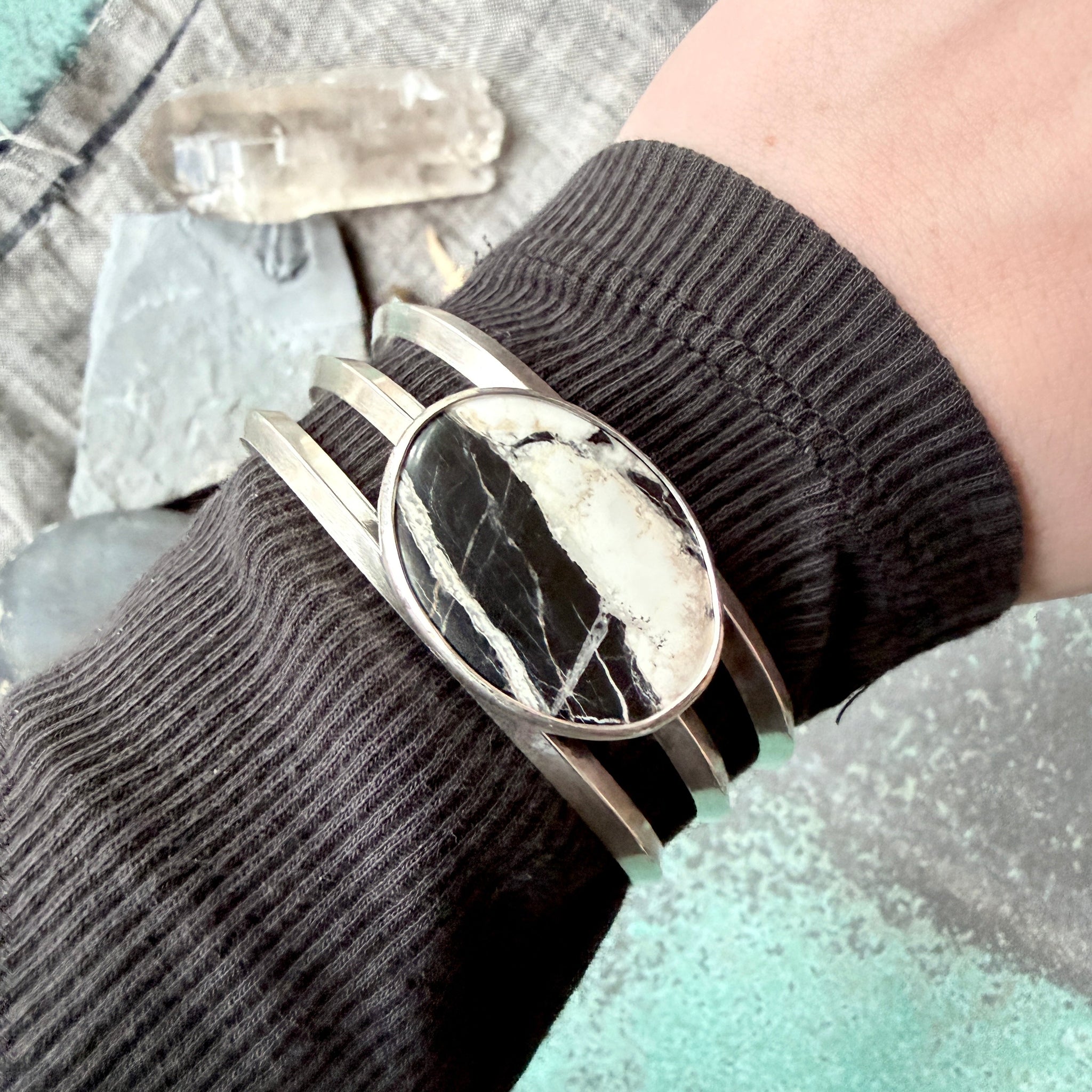 Custom White Buffalo Triple Cuff Bracelet, Handmade, Sterling Silver