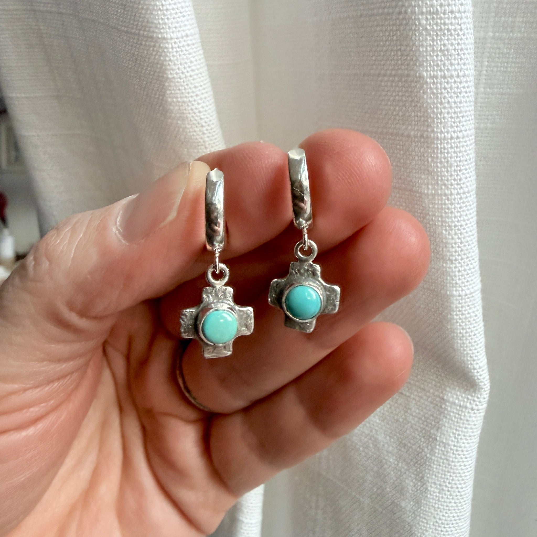 Simple and stunning little turquoise earrings. These Huggie hoops snap shut with a satisfying secure click. Lightweight and easy to wear.