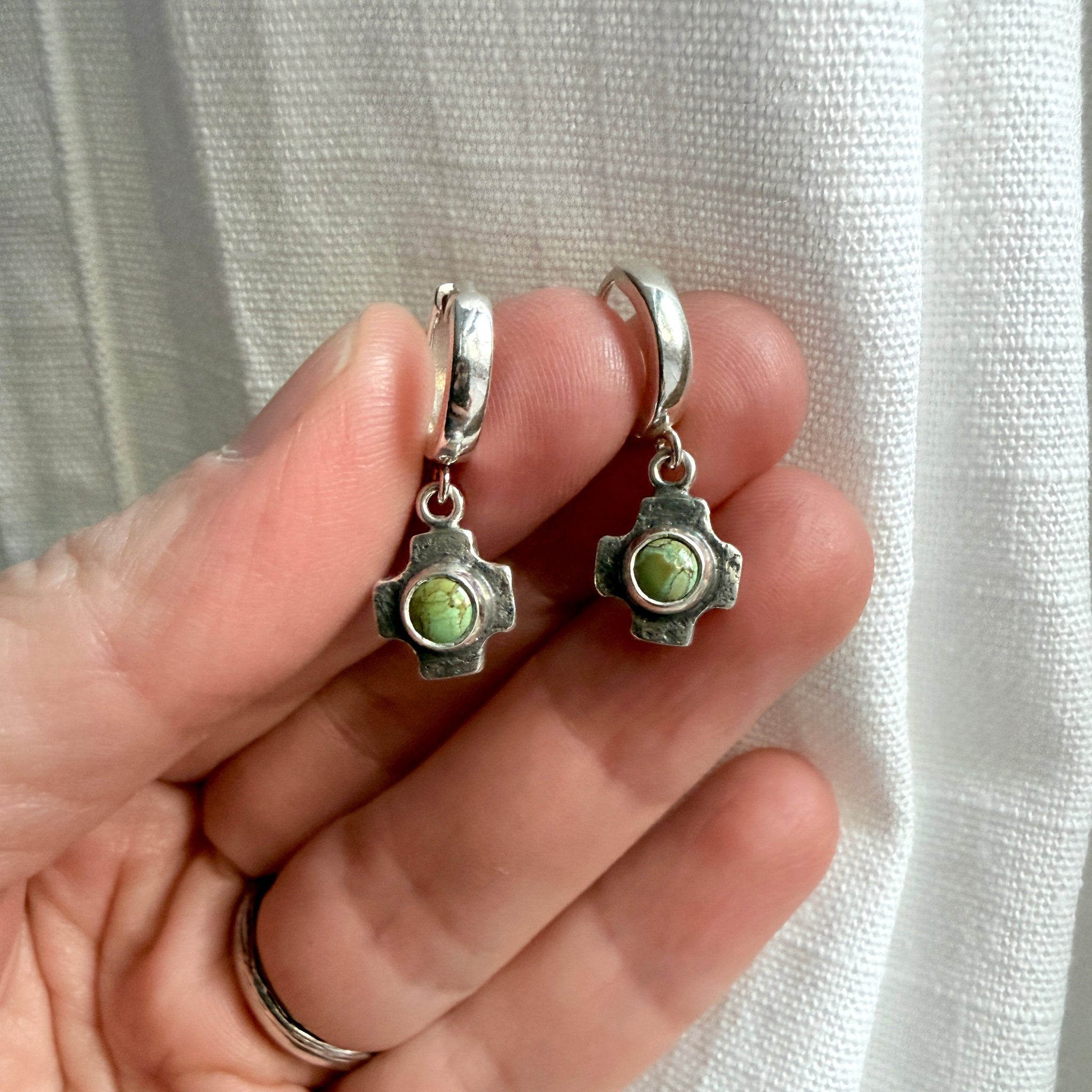 The turquoise and sterling cross charm is 3/8"