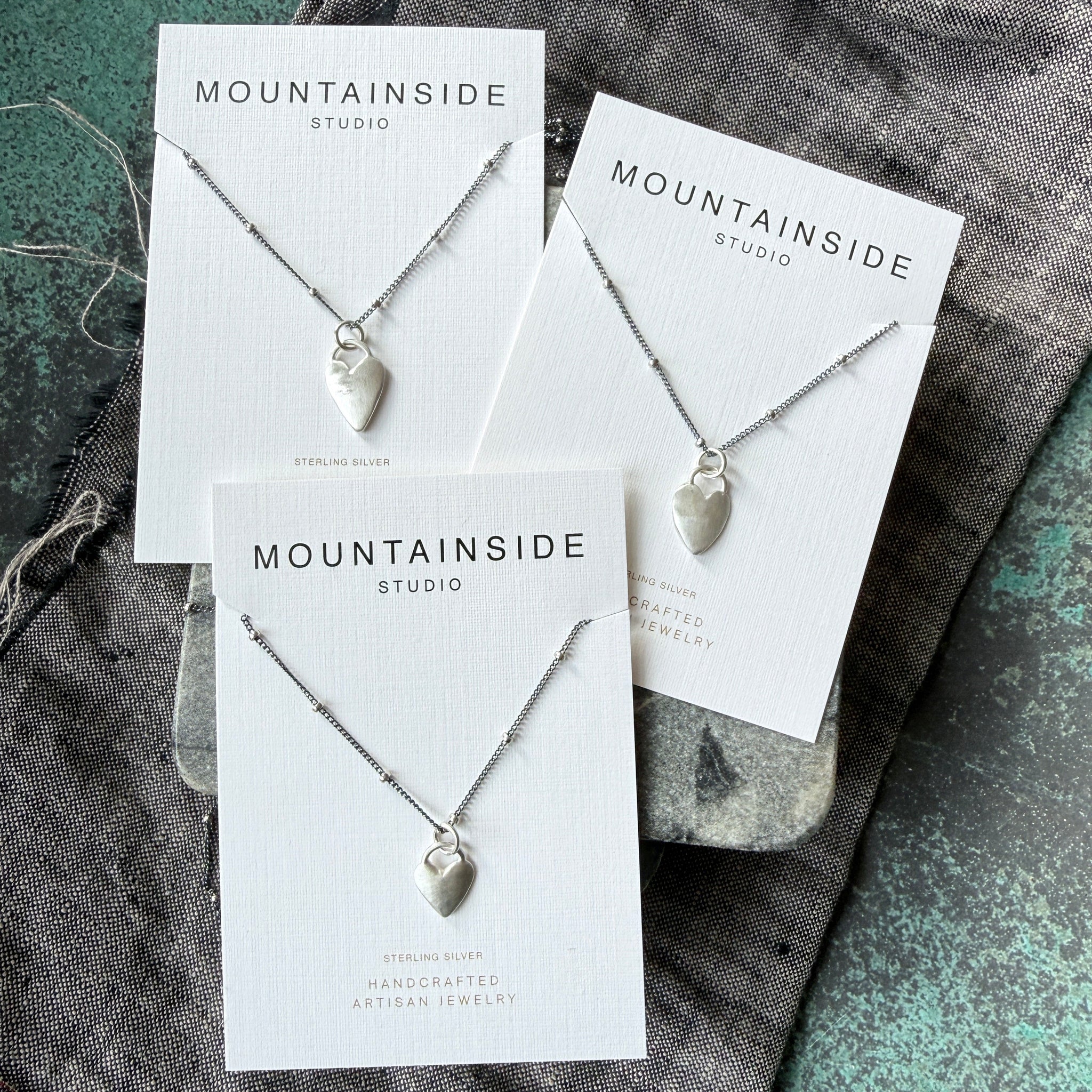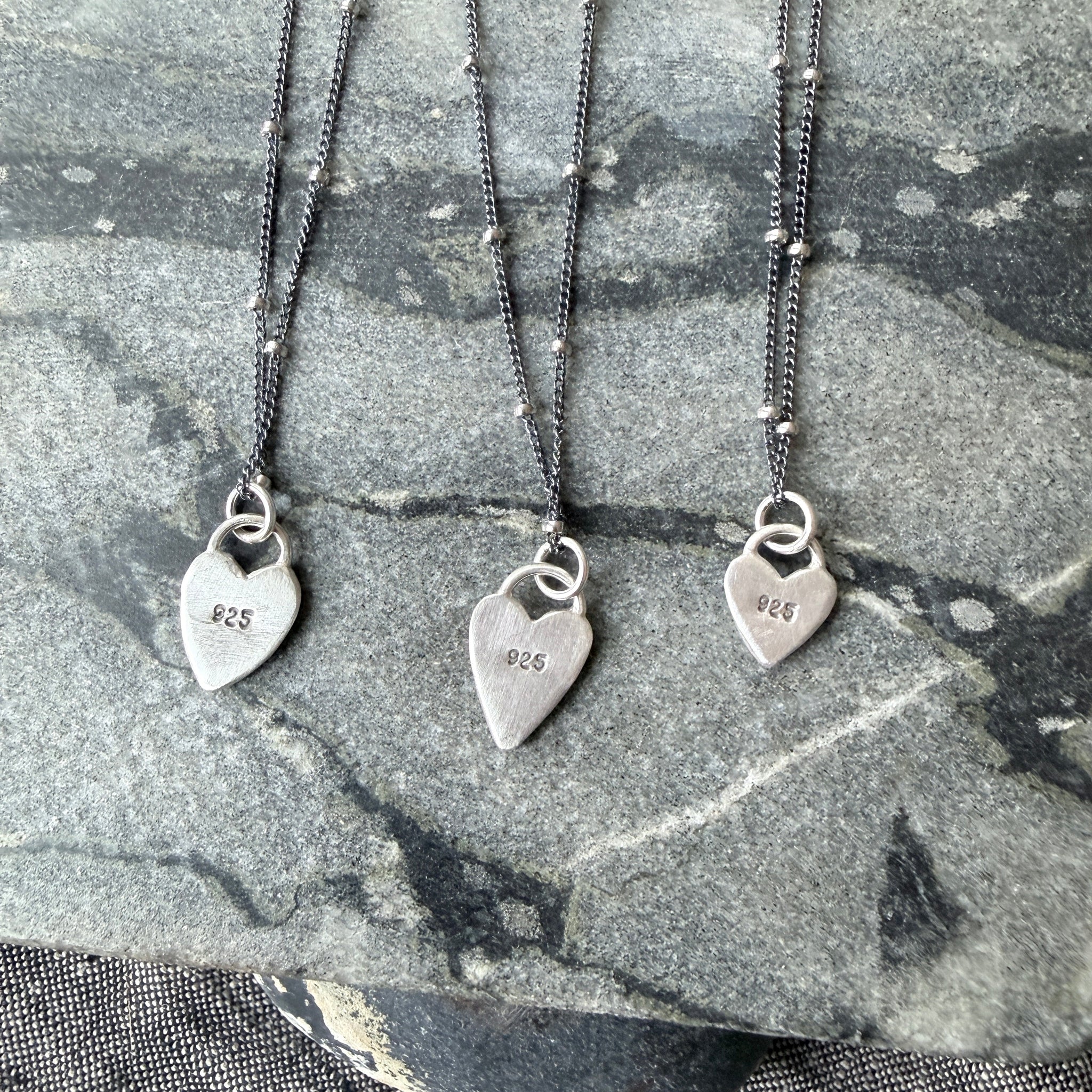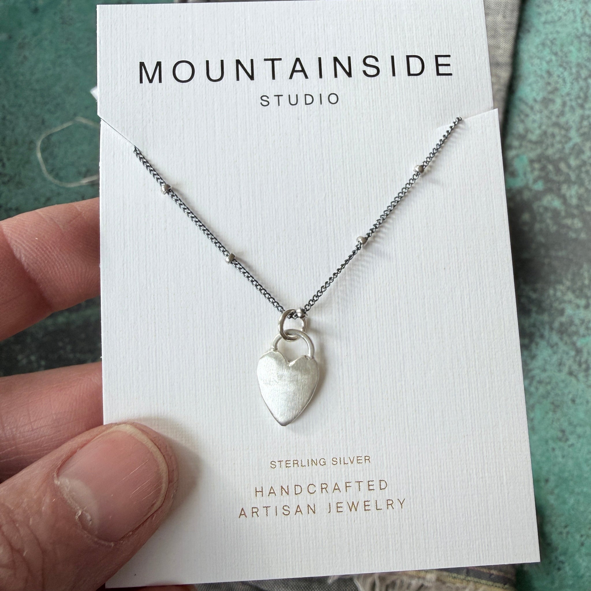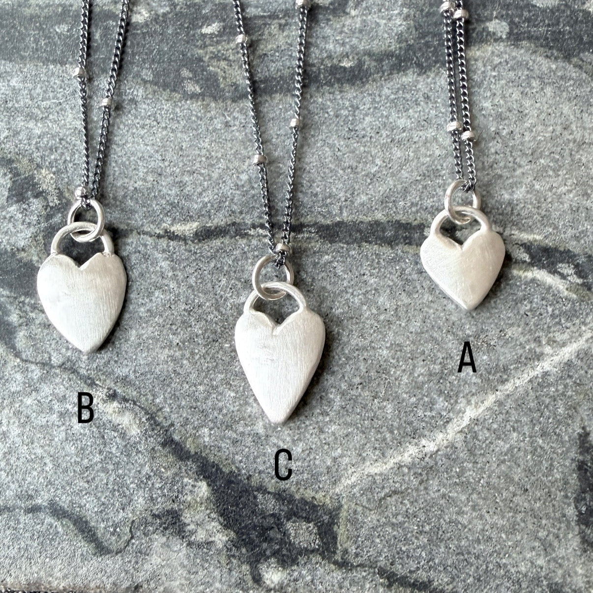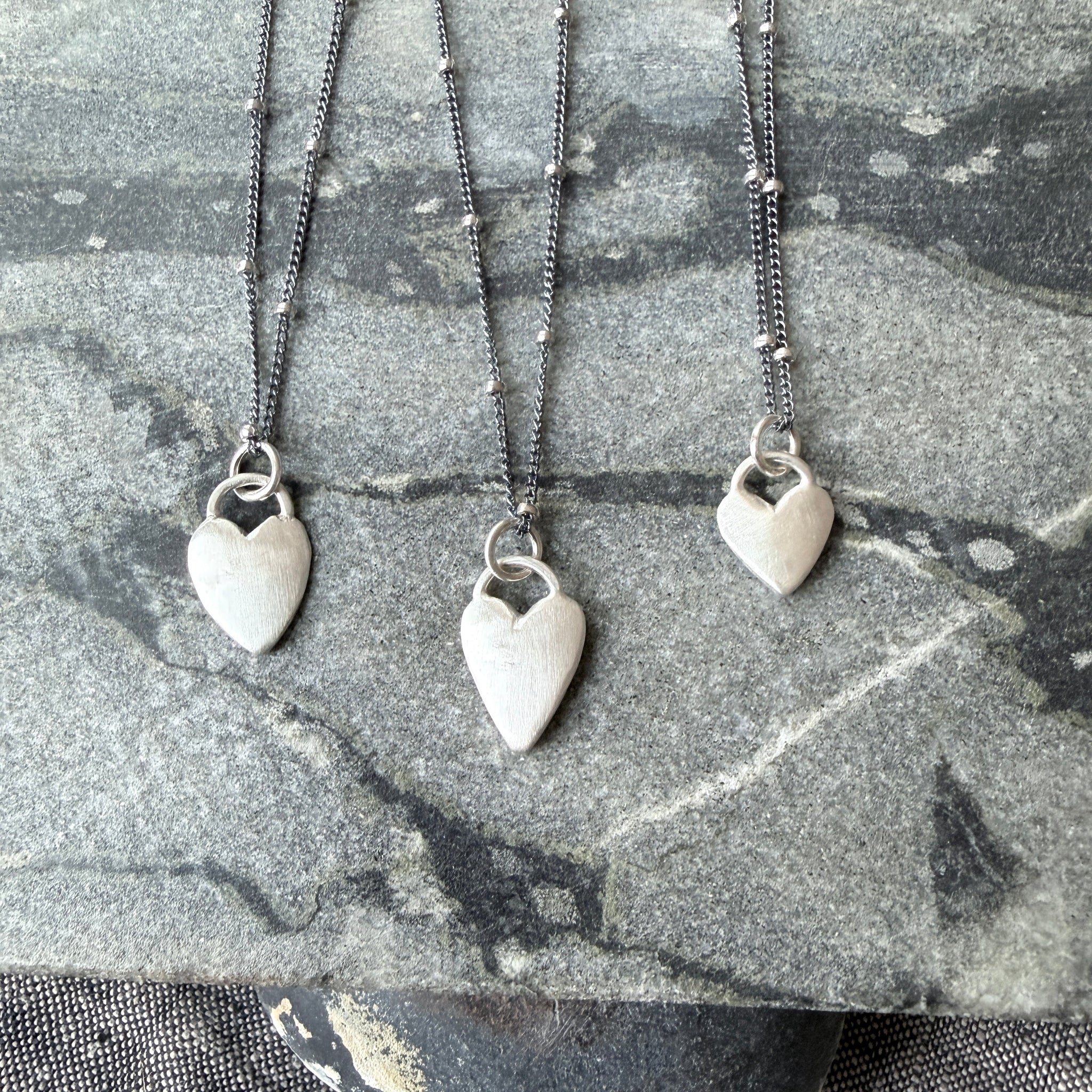 Sterling silver heart made with heart and hands ... with a glowing soft brushed finish. 925 Sterling stamped on the back for authenticity. One-of-a-kind. I simply sweet token of LOVE for your favorite person.